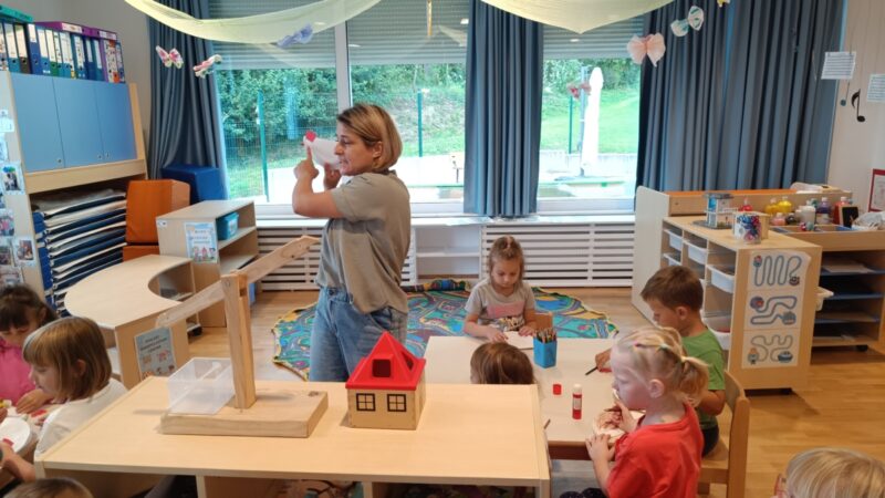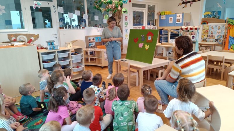 U srijedu, 16. srpnja 2025., Dječji vrtić “Jesenje” ugostio je pripovjedačicu Miljenku Benc, koja je mališanima ispripovjedila priču “Crvena koka i zrno pšenice”. Priču je pratila šarena predstava likova izrađenih od filca, što je dodatno oživjelo događaj i privuklo pažnju djece. Nakon pripovijedanja, uslijedila je radionica na kojoj su djeca imala priliku izraziti se kroz pokret, oponašajući likove iz priče. Ovaj kreativni pristup potaknuo je njihovu maštu i tjelesnu koordinaciju, dok su se istovremeno zabavljali i učili o junacima iz priče. U drugom dijelu radionice, djeca su izrađivala glavnog lika, kokoš, koristeći tehniku kolaža i savijanja papirnatih tanjura. Ova likovna aktivnost razvijala je njihovu finu motoriku i osjećaj za umjetnost te im istovremeno pružala zadovoljstvo jer su stvarali nešto vlastitim rukama. Ovaj posjet pokazao je koliko je važno djeci pružiti prilike za izražavanje i učenje kroz igru i umjetnost. Fotografije s pripovijedanja i radionice dostupne su u galeriji.