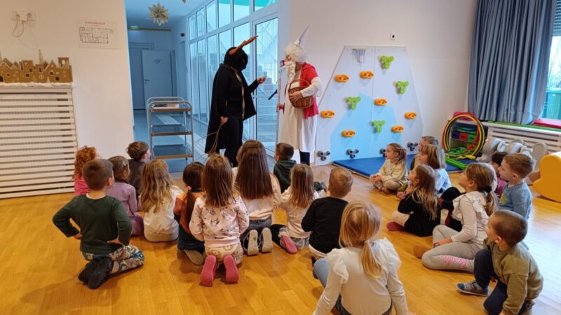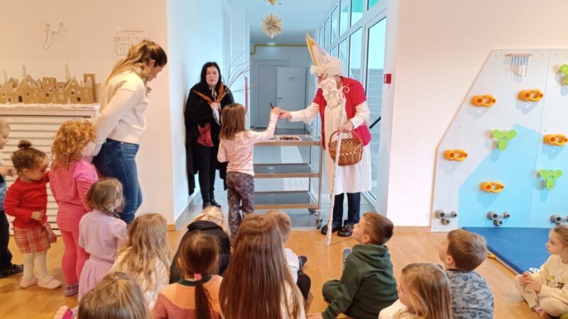 Početkom prosinca djeca s nestrpljenjem čiste svoje čizmice — svi čekaju trenutak kad će sveti Nikola ubaciti pokoji slatkiš. Ove je godine sveti Nikola, u pratnji Krampusa, posjetio i naš vrtić. Veselo pjevajući prigodne pjesme, mališani su s radošću dočekali goste. Nakon kratkog igrokaza koji su pripremile odgojiteljice, sveti Nikola i Krampus prišli su djeci, srdačno razgovarali s njima i svima podijelili slatkiše, a poklon paketiće su smjestili u ormariće kako bi ih mališani kasnije mogli ponijeti svojim obiteljima.